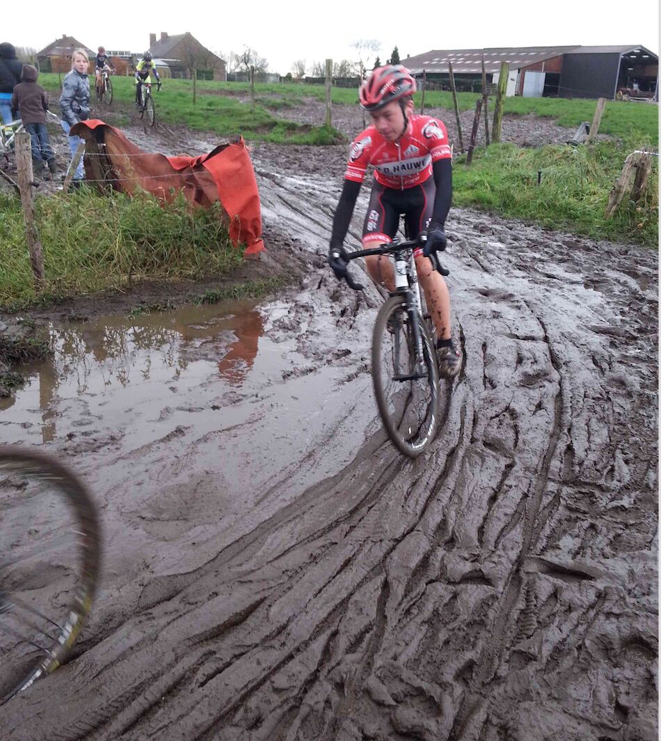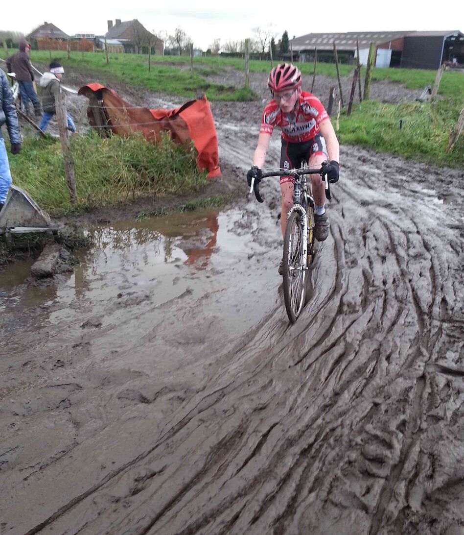 oude pastorij. De vele regen van deze week had het parcours heel glibberig