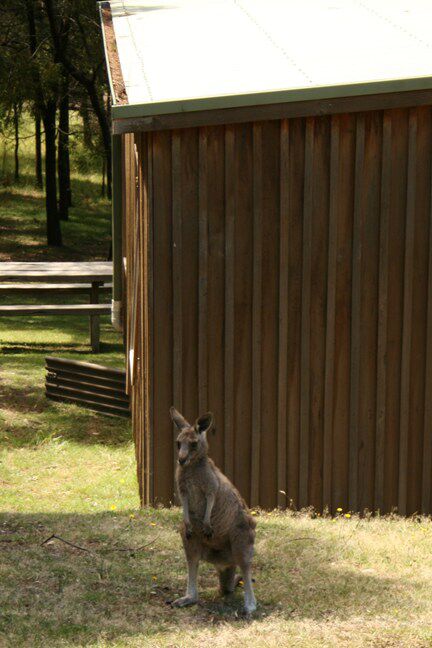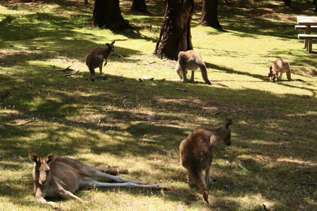 Rond de middag kwamen we dan aan op een rustig en gezellig domein waar enkele vakantiehuisjes te vinden waren. Eens daar ingenesteld, zijn we de omgeving gaan verkennen. Kangoeroes, hadden we die week maar amper gezien, maar daar in Halls Gap, hoefden we maar 2 stappen uit het huisje te zetten en we hadden er al 10 zien voorbij springen. Heerlijk hebben we daar nog genoten van de dieren en de omgeving. En die avond was er dan ook nog eens eten van mams keuken, want we konden koken voor onszelf.