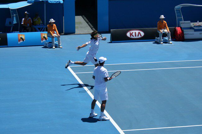 De eerste een dubbelspel: Feliciano Lopez (Spanje) en Fernando Verdasco (Spanje) tegen Max Mirnyi (Wit-Rusland) en Andy Ram (Israël) een snelle maar indrukwekkende match met de uitslag: 6-3 6-4