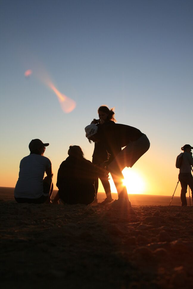 De volgende ochtend zaterdag 18 april 2009 (niet zoveel later) werden we te vroeg wakker gemaakt, hadden ontbijten een frisse douche en begaven ons met de bus naar die oude bekende plek waar we zoals vorige Bushtrek kamelen hebben bereden. Achteraf naar de Art galeries van Silverton en dan weer naar onze slaapplaats voor het middagmaal. Na de middag begaven de andere AFS-ers zich naar de zilvermijnen maar aangezien wij deze bushtek (Saga en ik en nog eenpaar AFS-ers die aanwezig waren op vorige bushtrek) vrijwilligers zijn (helpen met koken, opruimen,...) bleven we met alle andere vrijwilligers in de schuur, hielpen met het avondmaal een speelden een potje kaarten, totdat ze dan terug kwamen. Het was al vroeg avond en rond zonsondergang, begaven we ons met zen allen met de bus naar een schone plek in the middle of nowhere, waar we de prachtige zonsondergang bewonderden. Nadien was het tijd voor avondmaal en lange gesprekken, tot in de vroege uurtjes rond het kampvuur.