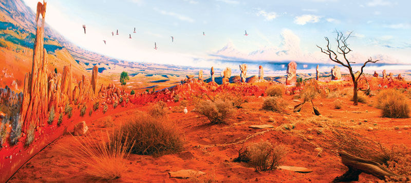 Die volgende zondagochtend, was het na ontbijt, het maken van onze zakken en opkuisen, tijd om te vertrekken. Eerst begaven we ons in Broken Hill, waar we van op een heuvel over heel het drop konden kijken. Dan naar The Big Picture: Worlds largest acrylic painting geschilderd door 1man (Ando). The Big picture is geschilderd op een canvas van12m x 100m, telt 100000 zoutstruiken, 3000 wolken, 20000 bomen, 20000 stenen en nog veel meer. Ando geschilderde delen liggend op zijn rug, gebruikte ongeveer 3000 ton verf en nam vijf jaar te conceptualiseren, plannen en ontsluiert uiteindelijk The Big Picture in 2001.