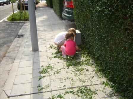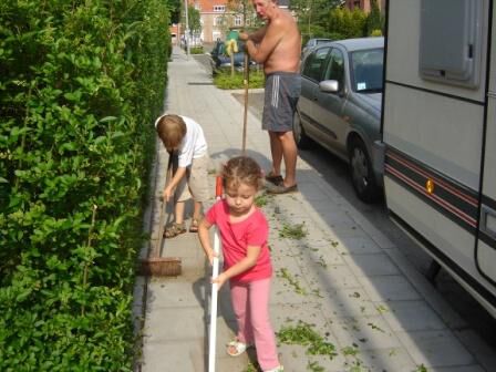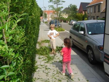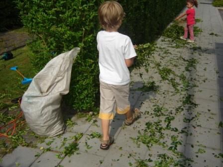 Later op de dag hielpen ze opa bij het opruimen van het haagsnoeisel. Ze deden het met véél plezier. Helpen met opa, dat willen ze altijd doen. Het zijn werkelijk onze "SCHATTEN"...