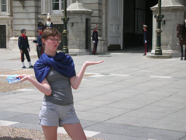 Eva op de foto met de bewakers van het Koninklijk Paleis!