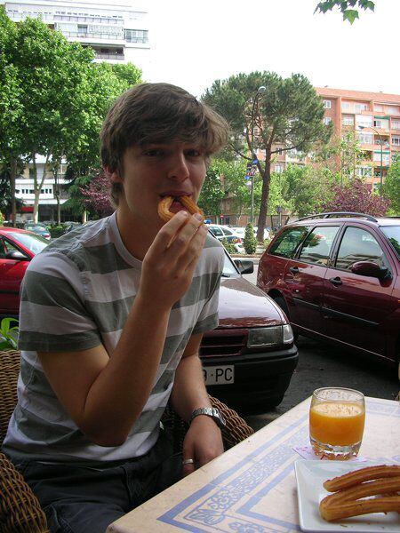 Ontbijten op terras met Churros en vers sinaasappelsap!! Mmm...