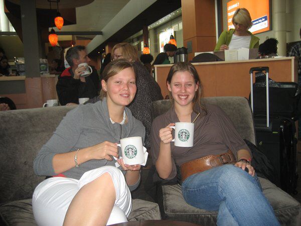 Nog maar in Zaventem en al in de Starbucks! Natuurlijk hebben we dat hier nog eens overgedaan, maar dan wel met een ijskoude drankje, wat ons even kon doen afkoelen!