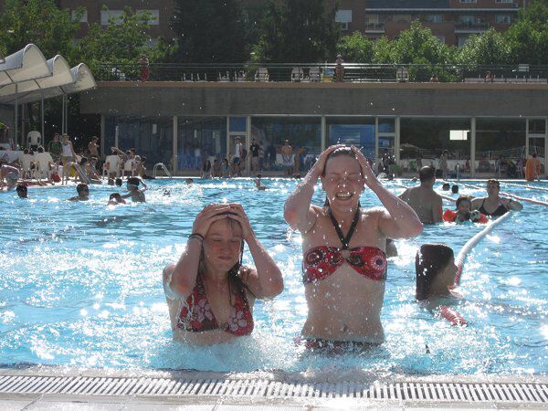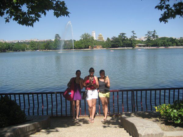 Dan dachten we nog te gaan genieten van het goede weer langs een zwembad, wat bleek gesloten te zijn voor een festival waar we ons toch niet zo gerust voelde, dan maar naar het meer met op de achtergrond The City of Madrid.