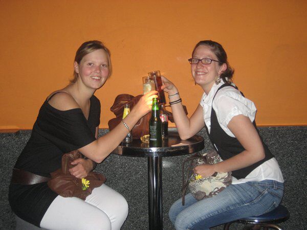 Nadat we het wel gezien hadden in de vorige discotheek (en teveel aangesproken werden door eenzame mannen), gingen we terug de straat op, op zoek naar de volgende propper die ons gratis inkom kon geven! En ja hoor, hier staan we dan in discotheek 'Dreams', te 'genieten' van ons gratis drankje'