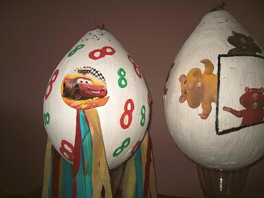 Hier twee van de vier piñata's in wording. Morgen gaat Irmie de ballonnen er uit halen en de piñata's vullen met snoepjes, speeltjes en confetti. Wordt vervolgd!
