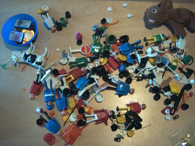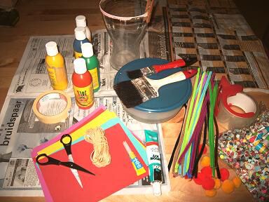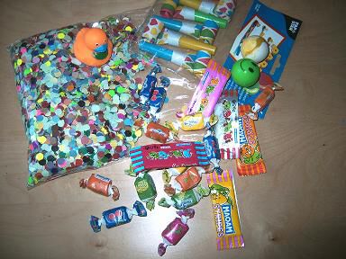 Is ie niet lief? De ballon is eruit. Gevuld met snoep en confetti. Compleet met opghangtouwtje. Klaar om aan gort geslagen te worden.... Nog even de rommel opruimen.