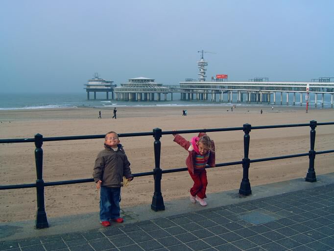 In de herfstvakantie van 2004 zijn we met opa, oma en Irmie naar Scheveningen geweest. Met de trein en met de tram. We zijn op de pier geweest en op de boulevard. Daar was ook Sealife (www.sealife.nl): Een heel groot aquarium waar de haaien zelfs boven je hoofd zwemmen. We hebben toen gegeten in een restaurant propvol teddy-beren. Die week zijn we natuurlijk ook naar de Ontdekhoek geweest want dat willen we elk jaar!