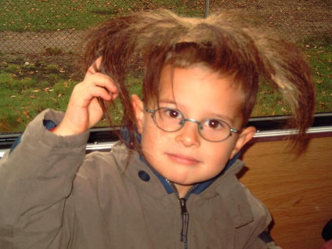 Bijna vergeten, maar in 2004 zijn we ook naar de Beekse Bergen (www.beeksebergen.nl) geweest. In een bus op safari tussen de loslopende wilde dieren. In die bus werd veel verteld over de dieren en we kregen ook veel dingen te zien. Een gewei, een bot, een slagtand en ook een stuk vacht van een of ander wild beest. En hup: Dennis legde het vachtje meteen op z'n hoofd. De chauffeur moest zo erg lachen dat hij bijna tegen een olifant botste (grapje!)