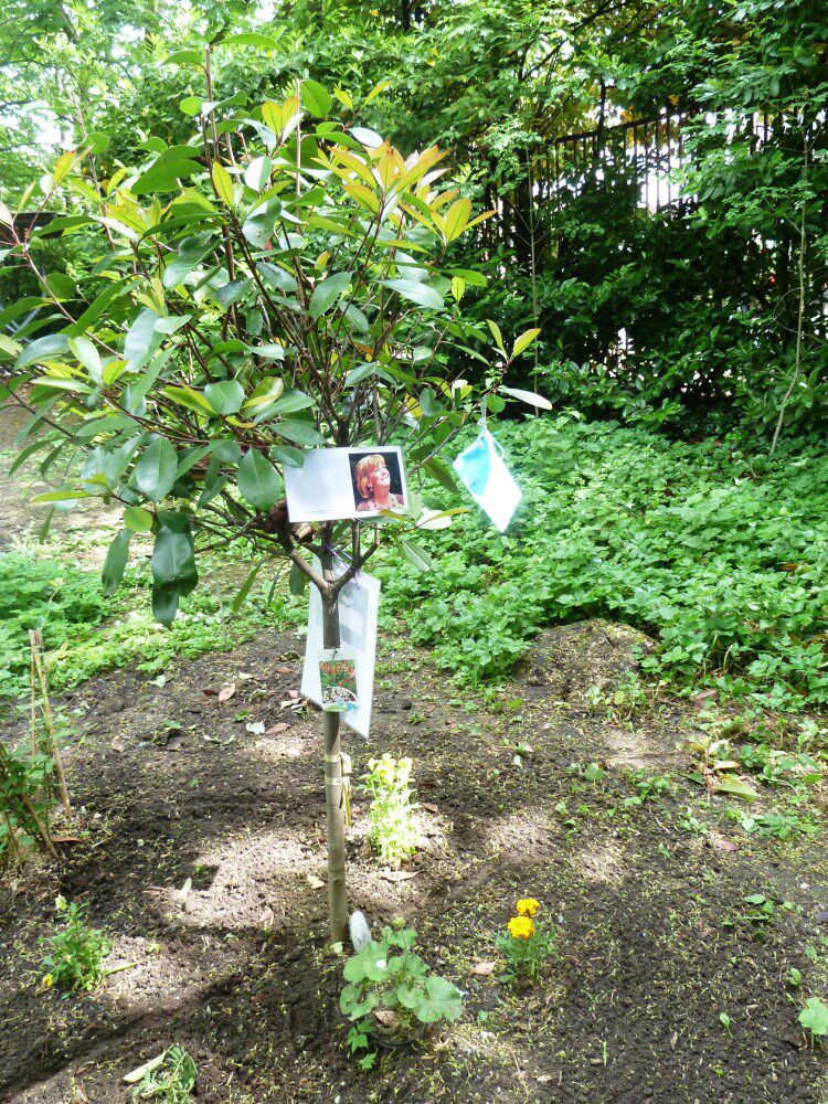 Daar draaien wij naar links, het smalle weggetje in dat naast het hekken ligt. Aan het einde van dit pad komen wij aan een draad waar het herinneringshoekje achter verscholen is. Vandaag een gedichtje voor Amal, geschreven door haar lieve vriendin, Hellen.