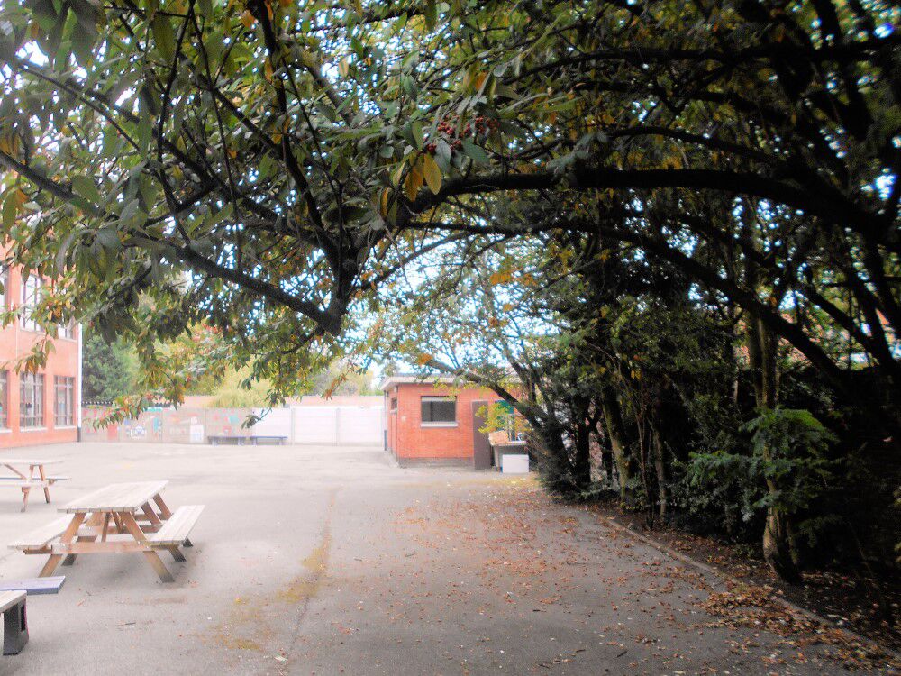 Op de eerste foto zie je de speelplaats vóór de werken, op de tweede foto erna.
