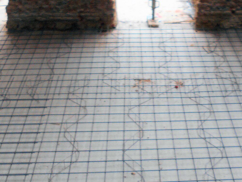 Wij vragen ons af waar dat allemaal goed voor is. Het antwoord vinden wij terug in de kelders. Op sommige plaatsen is de vloer reeds volledig bedekt met een patroon van ijzeren lijnen die van de ene muur naar de andere reiken. Als daar nog een laag beton over ligt, zal die vloer wel héél stevig zijn.