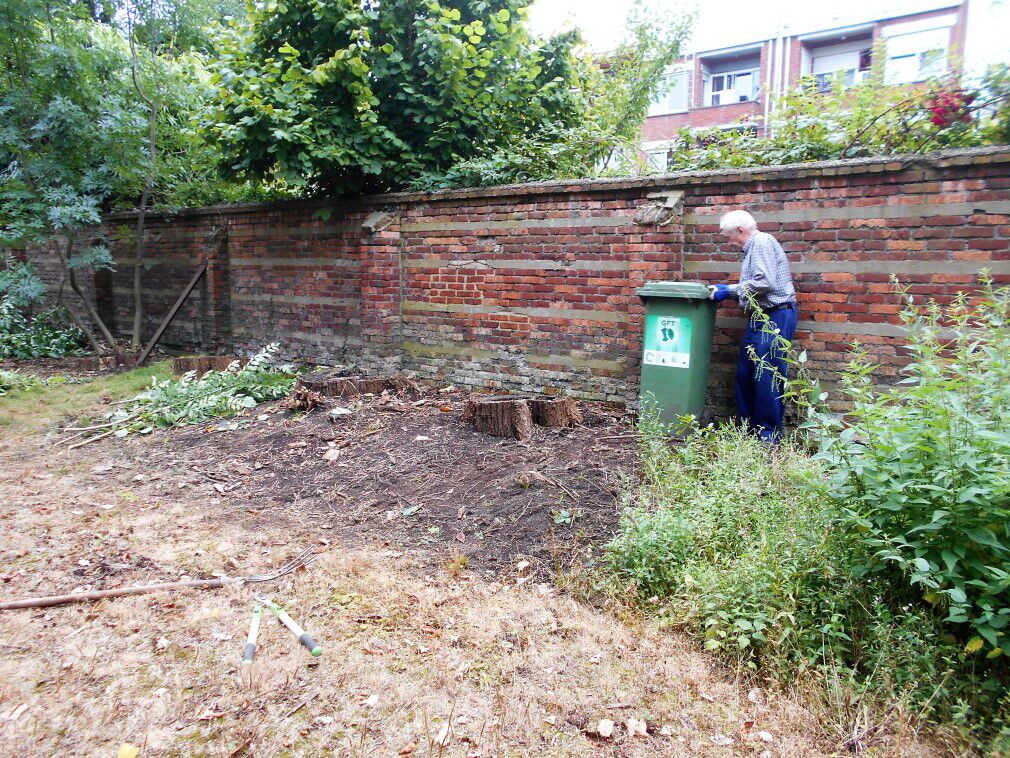 Helemaal aan de rand van de piste werkt Stan al enkele weken aan het verwijderen van brandnetels, springkruid en ander onkruid (ook al met de hand); het verschil tussen de plek mét en die zonder wildgroei is wel opmerkelijk.