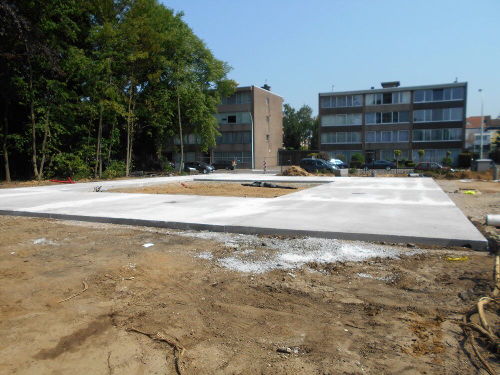 Vlak bij de sporthal krijgt de nieuwe parking stilaan vorm. Centraal zouden er vier eiken worden geplant wat het verlies aan bomen toch al een beetje compenseert.