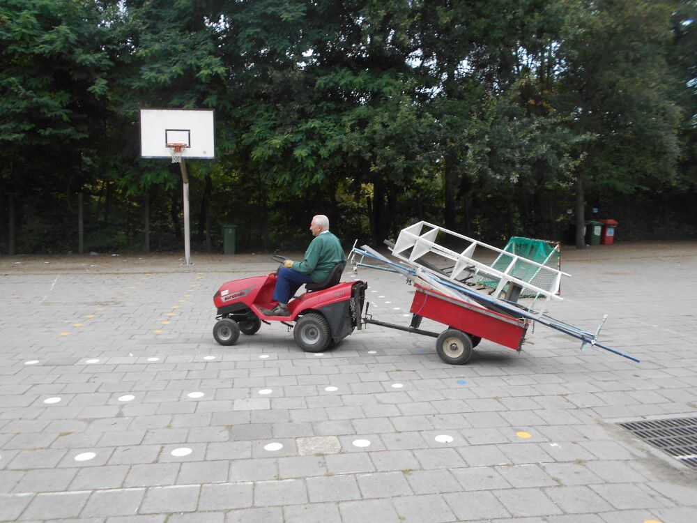 Daar zijn Dré, François, Peter en ik aan de slag. Versleten schoolmeubelen worden gedemonteerd zodat wij het oud ijzer kunnen recupereren. Een soms moeilijk werkje dat heel wat tijd in beslag neemt. Uiteraard moeten wij dat afval ook nog vervoeren naar onze bergplaats waar het later zal afgehaald worden.