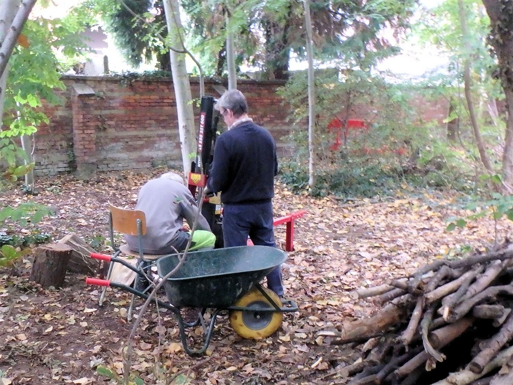 Voor de derde opeenvolgende keer hielden wij ons in het park van Groenendaal weer bezig met het klieven van hout. Er lagen nog heel wat grote stukken van omgezaagde bomen te wachten om tot brandhout verwerkt te worden. Na vandaag blijft er nog voldoende over om ook volgende week verwerkt te worden.