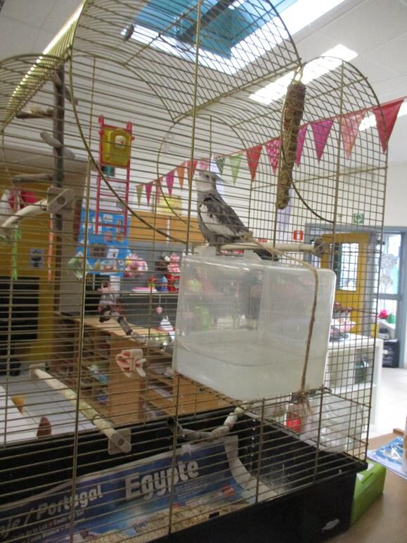 Chicco de valkparkiet (van Manuela) is op bezoek in onze klas