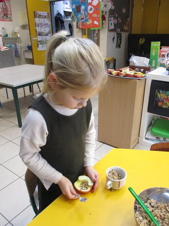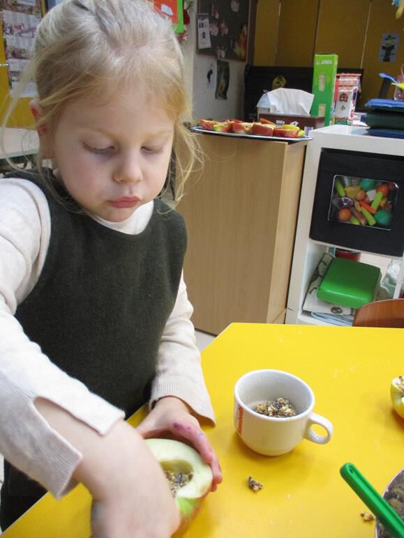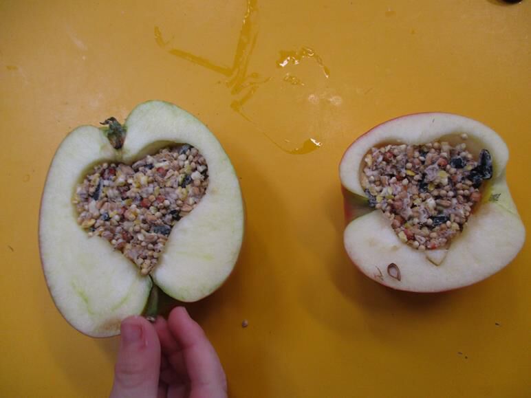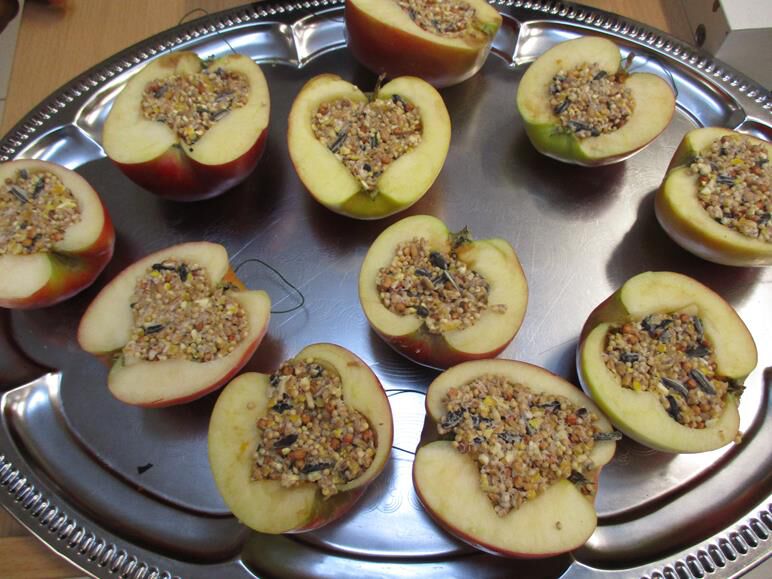 recept : appels, gelatine, water, bloem en vogelzaadjes