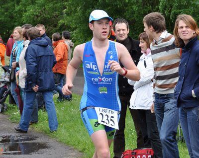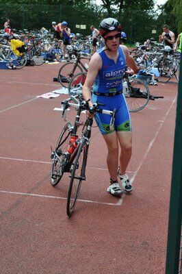 Mijn wedstrijd dan. Een niet-stayer wedstrijd over 1500m zwemmen, 42km fietsen en 10km lopen. IJzigkoud water daar in Seneffe met een temperatuur van 15°C! Gelukkig wende dit redelijk snel. Eenmaal de eerste meters gezwommen waren had ik hier geen last meer van. In tegenstelling tot mijn vorige triatlons kon ik deze keer telkens mooi in het pak blijven tegenover het zigzag zwemmen van vorig jaar. Wat voor mezelf een serieuze opsteker was, is dat ik de 1500m continu kon blijven zwemmen. Vroeger moest ik nog regelmatig overschakelen naar schoolslag om wat op adem te komen. Het zwemmen werkte ik af aan een heel regelmatig tempo. Na 28 minuten (wissel inbegrepen) kon ik als 135e (op 218 deelnemers) het fietsen aanvatten. Het zwemmen zal uiteindelijk zo'n 26 minuten in beslag genomen hebben. Toch al een minuut beter dan 8 maanden geleden. Het enige slechte gevoel dat ik aan het zwemmen overhield zondag is dat mijn Polar volledig gesneuveld is...