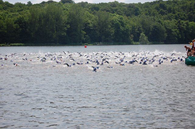 Vorig jaar startte ik in Couvin voor het eerst in een triatlon. Toen zei ik nog, volgend jaar kom ik terug voor de kwart en daar stond ik dus. Couvin is een heel lastige maar o zo mooie triatlon met meer dan 700 hoogtemeters in het fietsen en zwemmen in het prachtige Ry de Rome met zowaar drinkbaar water! Voor mij veruit de mooiste/zwaarste kwarttriatlon in België. Er kwamen zo'n 230 deelnemers aan de start in hele warme weersomstandigheden.