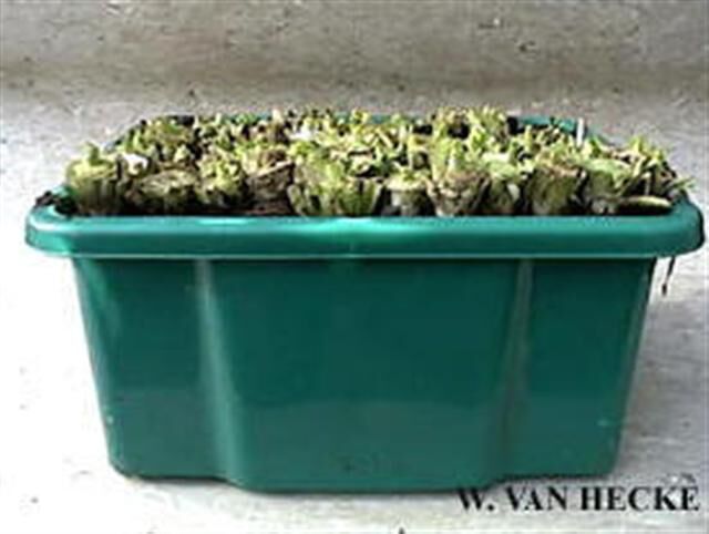De witloofwortels zijn allemaal ingelegd in emmers en bakken. Nu staan ze nog op een koele plaats in een kot Ze worden per bak of emmer bij een warme bron gezet bv bij mijn mama in de chauffageruimte en bij ons thuis in de kelder met een donkere doek op. Op enkele weken is het witloof er. Hier is een foto hoe een bak of emmer eruit zit