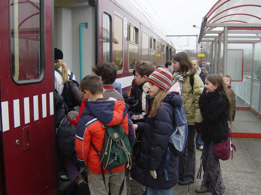 Sneeuw en koude bleven niet uit op deze eerste lentedag ! Snel een plekje in het wachthokje op het perron veroveren was de boodschap !!