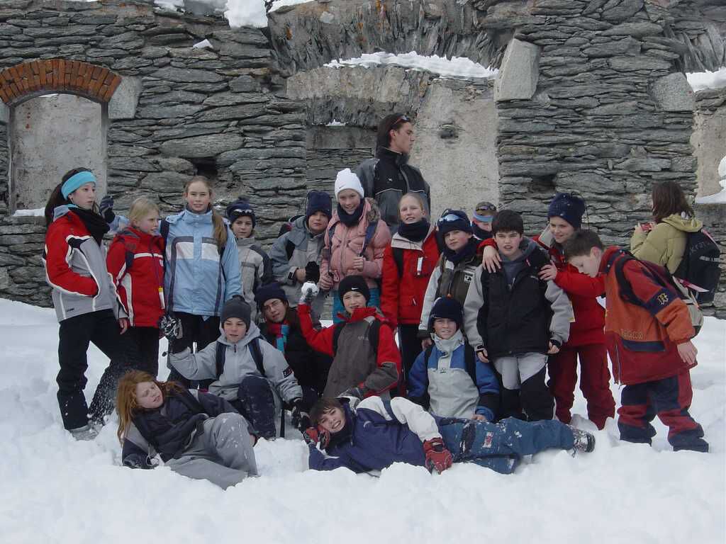 Hallo Huizingenaren ... hoe gaat het daar met jullie ? De eerste brieven zijn aangekomen.Vandaag hebben we het dorp van Maloja verkend.De juf gaf heel wat uitleg over het leven en het werk van de kunstschilder Segantini.Weet je dat hij zelfs een plan had om deel te nemen aan de wereldtentoonstelling in Parijs in 1900 met een schilderij van 220 m lang en 20 m hoog.Te gek !Spijtig kon dit plan niet doorgaan wegens geldgebrek en een jaar later stierf hij aan een buikvliesontsteking door het eten van sneeuw.Hij schilderde namelijk buiten om het schitterende spel van licht weer te geven.