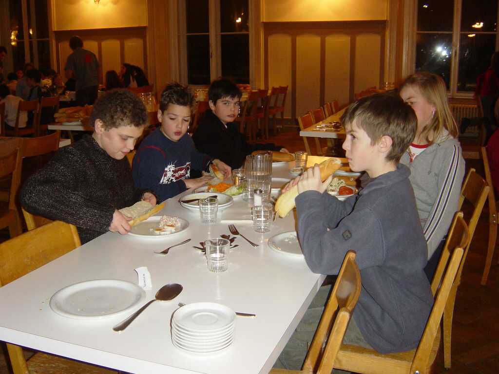 Deze ochtend hadden we ook tafeldienst.Alle tafels moeten gedekt worden voor het middagmaal.We deden dit samen met de zesdeklassers van Knokke-Heist.De laatste avond zijn we weer van de partij.Wij vinden dat niet erg.Het is plezant om dat met zn allen te doen.