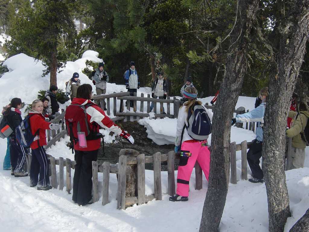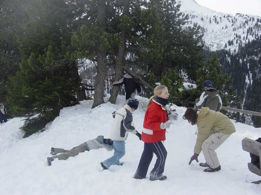 Vandaag scheen de zon weer volop althans in de voormiddag.Samen met alle andere kinderen hebben we een groot monispel gespeeld.Iedereen werd verdeeld in groepen.Sommigen vonden het leuk om eens met andere kinderen in contact te komen, anderen vonden het spijtig dat er niemand van de klas deel uitmaakte van de groep.Een goede conditie was een vereiste om dit spel te kunnen volhouden.Diepsneeuwlopen op een plat vlak en berglopen in diepsneeuw waren de vermoeiendste activiteiten maar eigenlijk ook wel de tofste.We zakten meer dan een halve meter diep in de sneeuw.Andere opdrachten waren boomstamrollen, sleetrekken, ringwerpen, mikado met skistokken.De monis waren fantastisch al waren sommigen verbaasd om te merken dat de monitrices wat strenger waren dan de monitoren.Het was een superleuke voormiddag.