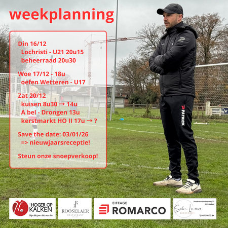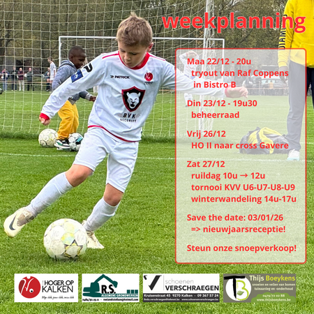 Het clubleven op HO Kalken trekt zich stilaan weer op gang. Morgenavond plannen we al de eerste piek in 2026 met de traditionele nieuwjaarsreceptie in de kantine. Inclusief topDJ.