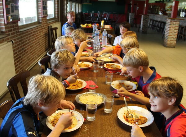 Alle jeugdploegen werken vrijdag een training af. Daarna krijgen alle spelers en speelsters een lekkere portie pasta. Gratis. Ook voor één begeleider (ouder, grootouder, grote broer, ...). Alle aanwezigen kunnen trouwens mee aan tafel, mits een kleine bijdrage te betalen.