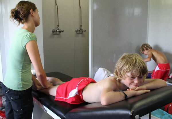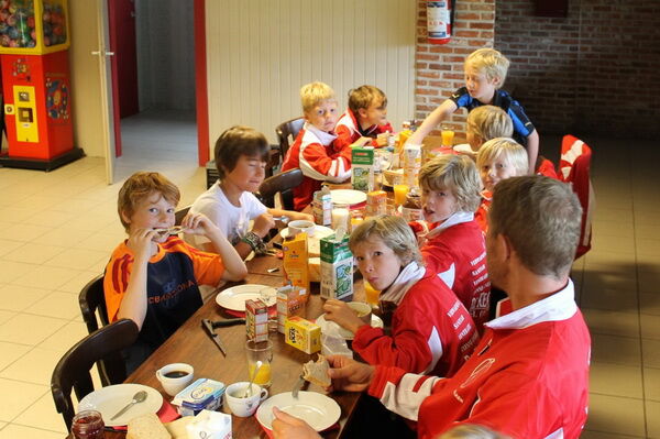 9.00 gezamenlijk ontbijt 10.00 eerste training 12.00 spaghetti 14.00 tweede training 16.00 croque-monsieur 17.00 sportmassage door clubkiné Katrijn Pauwels 18.30 oefenwedstrijd U10 - Massemen