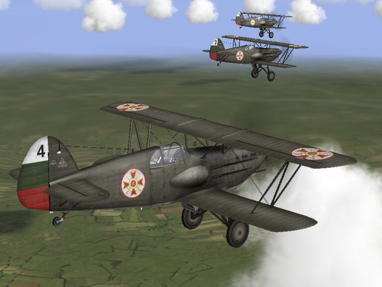 Bulgaars jachtvliegtuig // Amerikaanse bommenwerper. 1943,Bulgarije.Met 8 B-534 jachtvliegtuigen zijn we hier in de lucht,met de opdracht terugkerende Amerikaanse bommenwerpers op te sporen.Zij hebben de olie rafinaderijen in Ploetsy gebombardeerd,en keren nu versprijd terug naar hun thuisbasis.Na een tijd ontdekken we een eenzame B-24 bommenwerper,waarop al onze toestellen de aanval in zetten.Na lange tijd weet ik uiteindelijk het genadeschot te geven,waarop de bommenwerper even later neerstort.We zijn maar net klaar met deze aanval,of we ontdekken een tweede B-24 bommenwerper op lage hooghte,waarop we meteen terug in de aanval gaan met al onze jagers.Deze weet uiteindelijk beschadigd te ontkomen,en hierbij verliezen we 2 van onze B-534 jachtvliegtuigen,zij werden door de boordschutters neergehaald.Een derde B-534 jager loopt zoveel schade op,dat deze een noodlanding moet uitvoeren op een veld.Met de overige jagers keren we terug naar de thuisbasis.