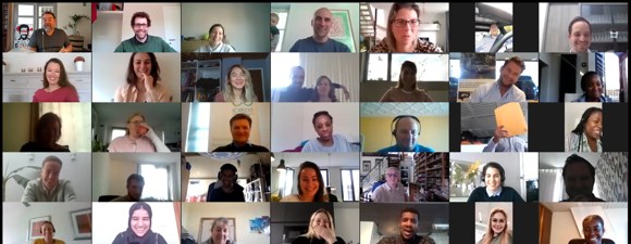Voor de collegas is het een leuke en bijzondere ervaring. Ze kunnen elkaar zien in een ontspannen sfeer, een glaasje drinken en bovendien zit er een bekende comedian mee in hun zoom-room die hen persoonlijk aanspreekt. Dat maakt het voor hen best intiem en uniek.