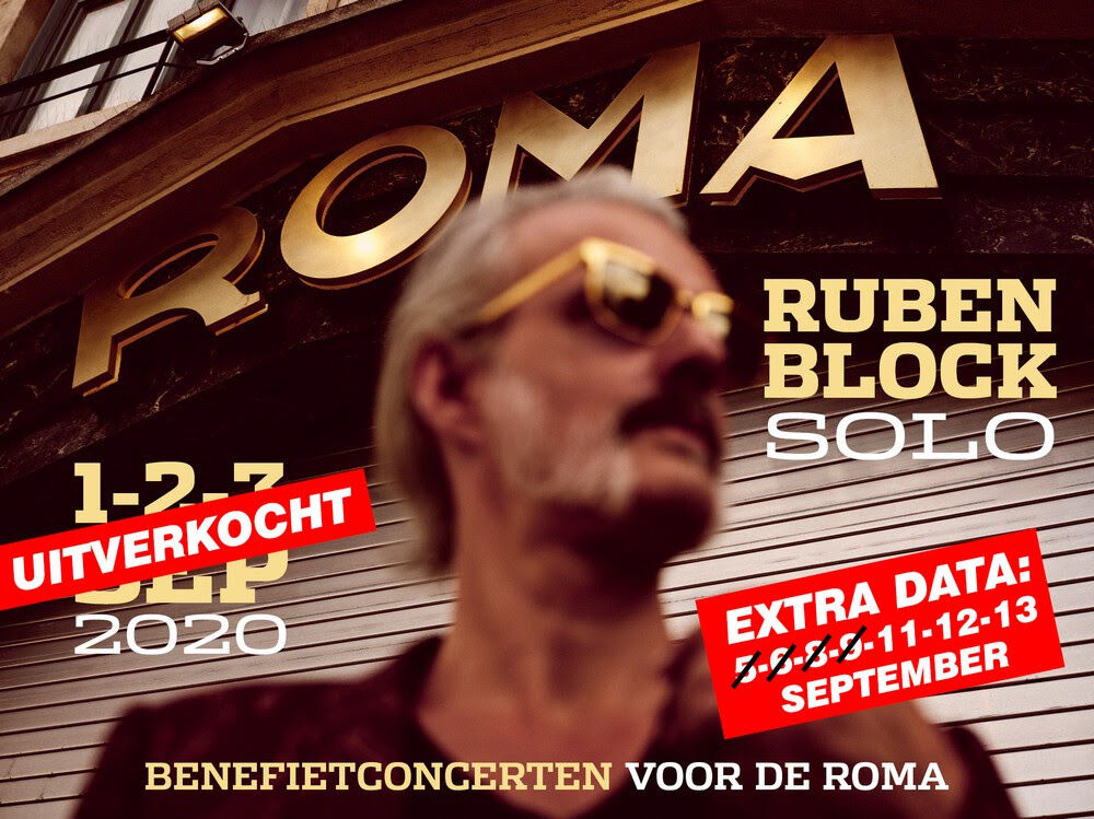 Nadat de 3 eerste benefietconcerten van Ruben Block voor De Roma op 5 minuten waren uitverkocht, vlogen ook de tickets voor de extra shows op 5, 6, 8 en 9 sep de deur uit.