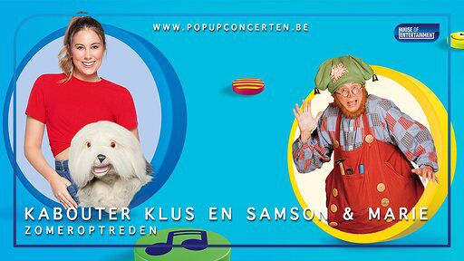 Vanaf heden kan je op www.popupconcerten.be tickets kopen voor de 'Kabouter Klus en Samson & Marie zomeroptredens' van dinsdag 14 juli in het Studio 100 Pop-Up Theater in Puurs.