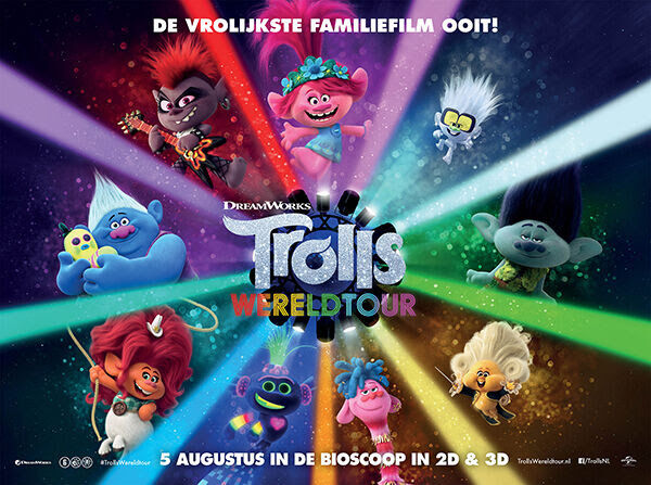 TROLLS WERELDTOUR / TROLLS WORLD TOUR draait nu in 128 bioscopen, in de originele en Nederlands gesproken versie. In 2D, 3D, 4D en Dolby Cinema.