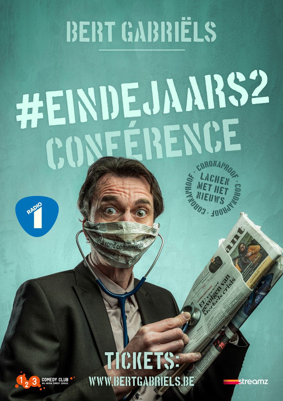 Het is dankzij de inspanningen van de theaters dat je op al die plekken in Vlaanderen coronaproof kan komen meelachen met het nieuws. Het wordt opnieuw een gevarieerde show. Het was een uitzonderlijk jaar, met stilstaande vliegtuigen en vliegende parasols, ons dagelijks gepruts met de lockdown, de staycation en de mondmaskers, en natuurlijk de Powerpoint van Wilmès en de pullekes van Marc Van Ranst. Maar ook Wout van Aert, pater Damiaan en alle helden van de zorg speelden natuurlijk een hoofdrol dit jaar. De Amerikaanse verkiezingen en Donald Trump zijn een onderwerp, net als de verhalen van sommige BVs én uiteraard blikken we terug op de regeringsonderhandelingen, want als je daarmee lacht, gaat het plots wél vooruit. Achter de mondmaskers kan er goed gelachen worden, zegt Bert Gabriëls geamuseerd.