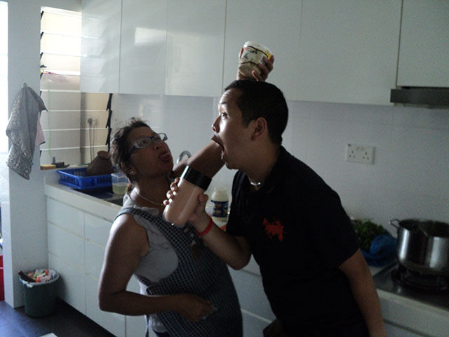 Vandaag ben ik weer bijna uit bed gevallen door het verschieten toen lewis zijn mama om half 10 op de deur klopte. Waarom net dat uur weet ik zelf nog niet goed maar ik was klaar wakker ;p We hebben dan rustig gegeten en wat opgeruimd. Toen zijn we vertrokken Lewis, Lewis zijn mama en Nicky en ikke ;p naar Nicky zijn school. Lewis en ik zijn onderweg blijven wachten en hebben koekjes gekocht. Dat mis ik hier echt koekjes ik heb er nog in mijn valies van Belgie maar gewoon ze hebben er hier niet zoveel en aan gezien het eten op een vliegtuig niet te eten is;p Geleerd uit mijn eerste ervaring spaar ik liever wat koekjes voor dan. Toch heb ik hier lekkere Kowala koekjes gevonde hihi;p zo harde koekjes met ja choco er in. Lewis zegt dat ze die thuis ook verkopen;p hmmm. Dan hebben Lewis, Zijn mama en ik de taxi genomen naar Fred zijn werk. Omdat iemand van zijn colegas Lewis een nieuw computer programma ging geven. We kwamen er aan om 5 voor 12. Dus middag eten samen met de collegas van Fred. Dat zijn ook 3 Belgische mannen echt leuk. We gaan dus zitten in een lokaal restaurantje en bestellen iets. Eerst eet Fred, dan lewis, ... de gerechten kwamen enorm gespreid. Het was super lachen het was daar echt een chaos maar die mannen waren echt grappig. Het besten was 1 van die mannen had dus een simpele omelet gevraagd en die kreeg zijn eten als laatste ;p haha echt grappig. Dan zijn we met hun mee gegaan naar de bureau. Ze werken op de 21ste verdieping en amai de lift gaat echt vlucht je voelt u zo in een atractie van een pretpark ;p u buik en oren doen gek hihi;p maar het uitzicht was prachtig;p In de verte zag je zelfs Santosa liggen en vlak bij het gebouw waar wij waren was de have. Wel logisch want Fred werkt met allemaal schepen die doet het technisch onderhoud van 11 schepen. Lewis zijn laptop moest even daar blijven voor het programma te installeren. De laptop blonk. Lewis had hem eerst gekuisd voor we vertrokken. Vuil dat die was ;p echt doek zag zwart, ja die neemt zijn laptop overal mee e;p hihi We zijn dan Nicky gaan afhalen en naar huis gekomen want er hing regen in de lucht. Ik ben thuis dan even inslaap gevallen. Lewis heeft gekookt. Fred had dan toen hij terug kwam van zijn werk de laptop terug bij met de nieuwe programmas, Lewis kei blij. Dan zijn Lewis zijn mama en Fred naar de Ikea gegaan. Lewis en ik bleven thuis en Nicky sliep al van 18uur. We hebben dan heel het huis gekuisd en opgeruimd en toen we bijna klaar waren werd Nicky wakker dat was rond 20.20uur. Dan hebben we just dance 3 gespeeld ;p wel zonder wii maar die hebben grote tv en we deden het gewoon na echt lache;p tot plots die mama binnen kwam dat was genant dan sta je daar;p heeeeum we zijn aan het danse;p hihi maar het was echt leuk. We hebben dan nog een geweldige teken film gekeken DESPICABLE ME. Super leuk Nicky deed alles na ;p en iedereen maar lache;p dan hebben we gedouchet en nu gaan we slapen morgen vroeg op staan omdat Lewis en ik naar de zoo gaan ;p jeeej ;p ja Nicky kan niet die moet naar school en volgend weekend ons laatste weekend is er een groot feest omdat Nicky 4jaar wordt en Fred en Lewis zijn mama 1jaar getrouwed zijn dus dan kunnen we ook niet samen gaan. Dus gaan we nu met 2 maar de zoo is echt groot ;p dus we gaan onze tijd nodig hebben;p SLAAP WEL xx