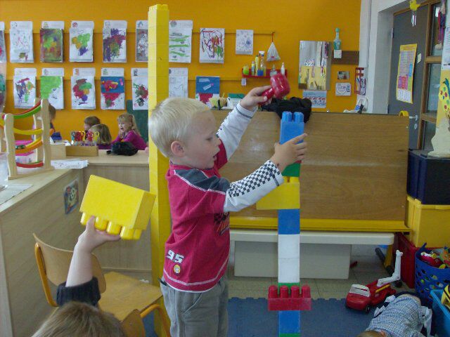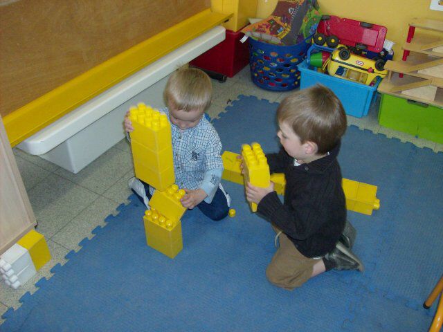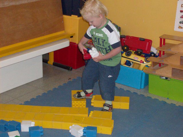 De jongens vinden het heerlijk om 'werkman' te spelen. Er worden op een dag veel torens gebouwd en andere werkzaamheden uitgevoerd. De meisjes kijken er naar en zien dat het goed is...
