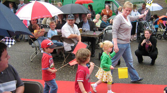 Feest op school! Wij waren uitgerust als echte rallypiloten en mochten over de rode loper naar het podium stappen. GBS-kampioenen werden overal gesignaleerd tijdens ons schoolfeest.