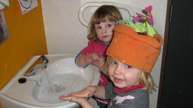 Vandaag hebben we allemaal geleerd hoe we onze handjes moeten wassen.
