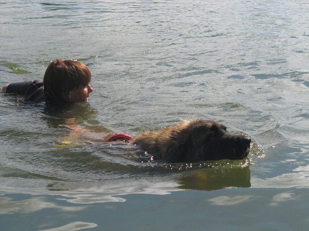 Nu al wat meer uitleg over de hobby van Izarra en haar trouwe baasje Sigrid. Samen doen ze aan waterwerk. Wat is waterwerk nu eigenlijk. Je kan het best beschrijven als reddingswerk in het water. Dus de hond leert om mensen (levend of dood) uit het water te halen. Maar ook van kleine voorwerpen tot hele rubber boten gaan halen en terugbrengen naar de kant. Het is een mooie wisselwerking tussen baasje en hond en zeer mooi om te zien. Vorig jaar heeft ons Izarra haar eerste brevet gehaald en hopelijk komt er tegen het einde van het jaar haar tweede. Je vindt er onder nog wat foto's als illustratie.