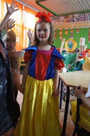 De eerste en tweede kleuterklas moeten van de speelzaal een sprookjesbos maken en er een verhaal in uitbeelden.