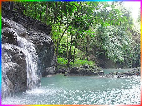 In een tropisch regenwoud, nabij Port Antonio, bevinden zich de Somerset Falls.