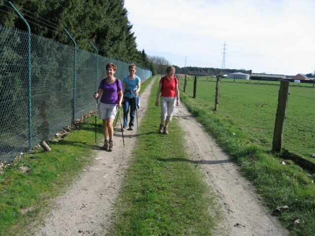 Samen met Jean, Josée, Ria en ik op weg naar Sint-Huibrechts-Lille. Alweer een nieuwe uitdaging omdat geen van ons allen wist waar eigenlijk onze wandeling zou doorgaan. Het vertrek was voorzien aan speeltuin De Bosuil, en met de zon erbij en rond de 24 graden was het fijn dat we eindelijk in korte broek en t-shirt konden stappen. Zalig om langs het kanaal (het Kempisch kanaal) te wandelen en te genieten van de vele eendjes en zwanen op de oevers en op het water. Ook was het heerlijk wandelen door de grote dennenbossen met zijn vele beekjes en langs grote plantages van taxussen en buxussen. Na ongeveer 6 km eindelijk een groot bord met TERRAS OPEN aan de visvijvers van de Walvissers, maar natuurlijk toen we eraan kwamen waren er wel veel vissers maar café met terras niet open. Dan maar een stukje cake (met chocoladekorrels) gegeten en lekker water gedronken. Na 2u40 met 13.8 km en 17.980 stappen in onze benen konden we toch gaan genieten in het zonnetje en op het terras van De Bosuil van een lekkere frisse pint.