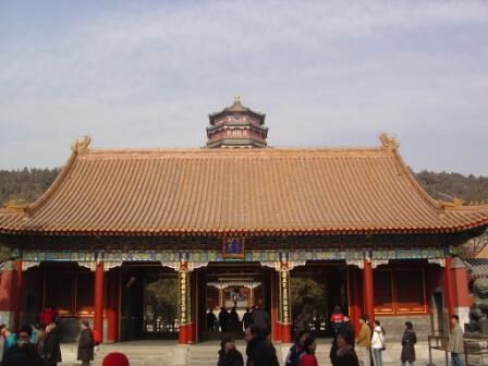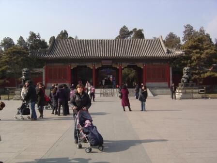 hier komen we net aan aan één van de ingangen van het zomerpaleis dit is een groot park met tempels & paleizen waar de chinese keizers verbleven tijdens de zomerperiode tot ergens het einde van de 18e eeuw