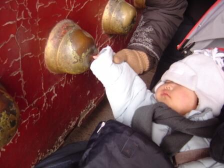 na deze uitgebreide wandeling keerden we een beetje moe en verkleumd terug naar het hotel onze ingeduffelde vedette had er ondanks de kousebroek, dikke sokken, schoenen en voetenzak ijsvoetjes aan overgehouden...